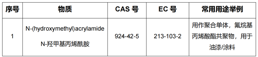 新增 1 项 SVHC 候选物质如下: